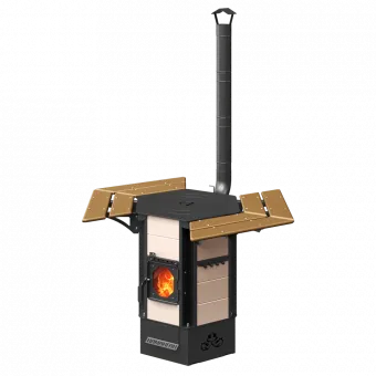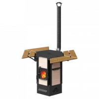 - Стальная топочная дверка с термостойким стеклом (с функцией обдува стекла) для визуального контроля процесса горения.